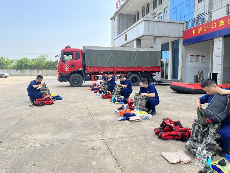 区消防救援大队按照人装集合,按照防汛抗旱应急预案做出快速反应,从装备携带、人员集结同步开展点验。