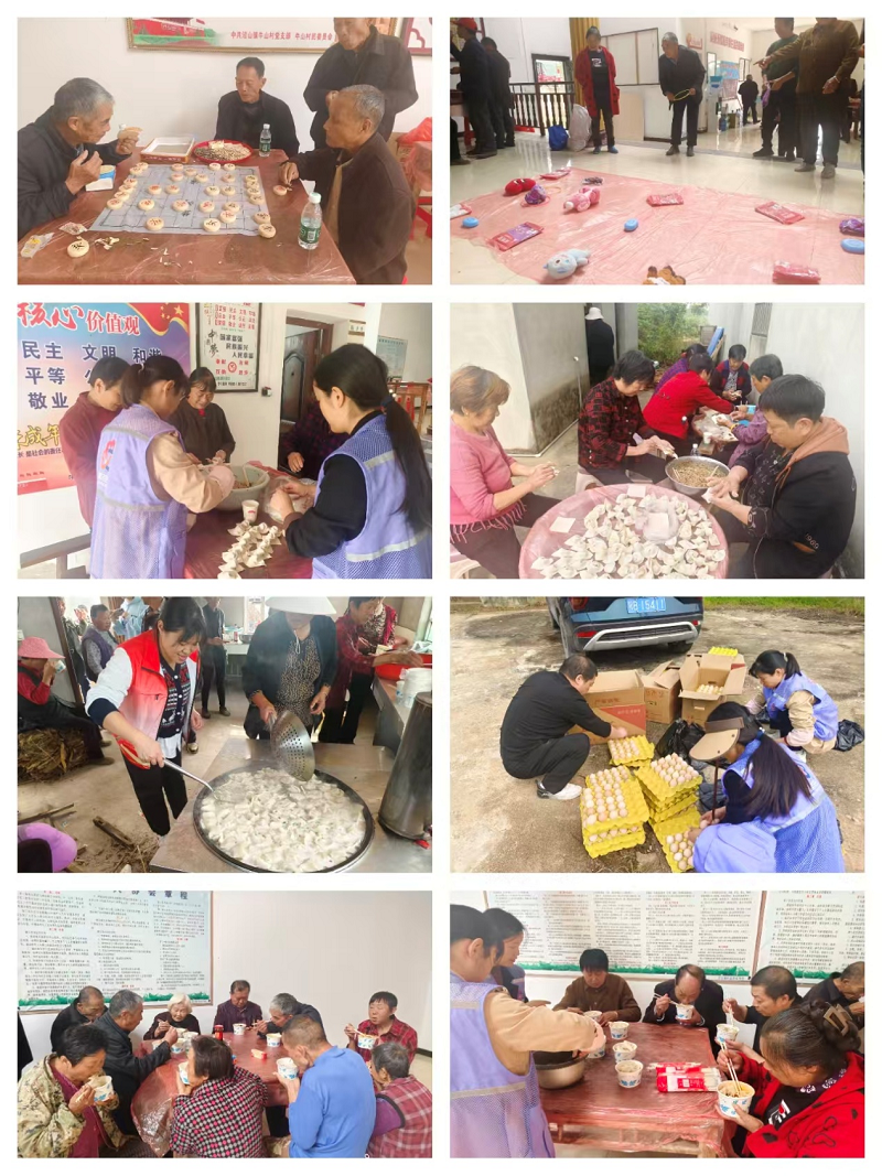 活动现场欢声笑语,村干部、志愿者与老人朋友们一起参与包饺子活动,大家围坐在一起,边包边聊,忆苦思甜,说起了自己过去的生活,感慨今天的幸福生活。一个个饺子在锅里翻腾,像一张张幸福的笑脸。期间,村干部还与老人们亲切交流,详细询问身体状况与生活需求,倾听老人们的意见建议,社工组织老人们开展套圈游戏,各类实用小奖品让老人们在游戏中收获快乐;象棋对弈区,老人们你来我往、博弈正酣,现场欢声笑语不断。