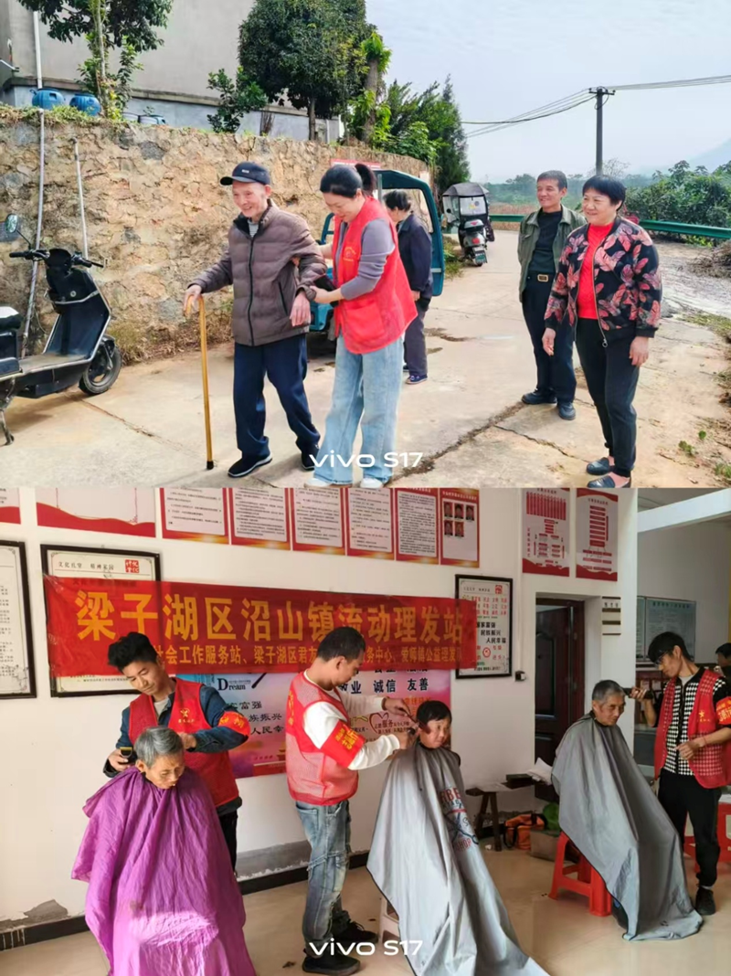 沼山镇社工站与爱师傅残疾人志愿服务队的志愿者们设置“流动理发站”,为老人们提供免费理发服务,让老人们精神焕发过佳节;同时,志愿者们还搀扶行动不便的老人参与活动,用贴心服务传递温暖。