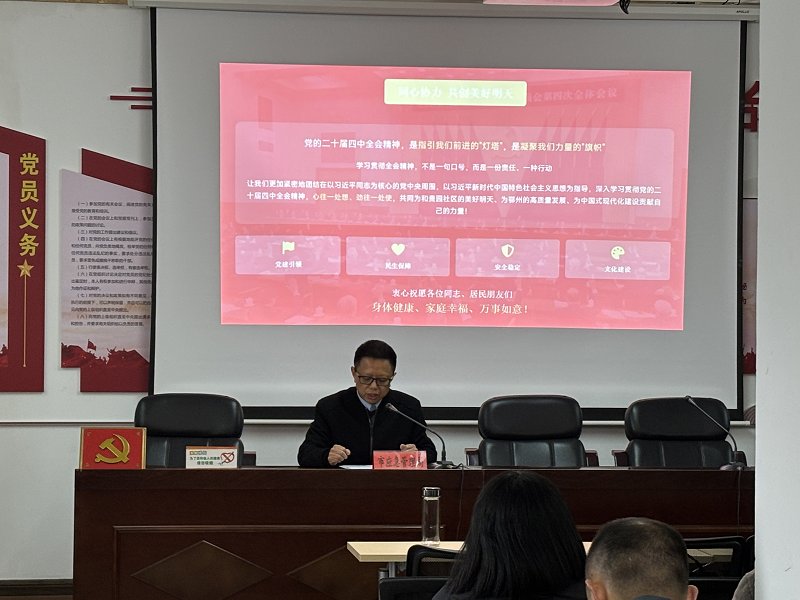 近日,市应急管理局党委委员、政治部主任徐海田赴联系点和贵园社区,开展党的二十届四中全会精神专题宣讲。局机关及社区党员干部齐聚一堂,认真聆听宣讲、交流学习体会,推动全会精神在基层落地生根、开花结果。