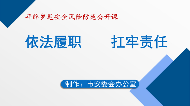 为深入学习贯彻习近平总书记关于安全生产重要指示批示精神,切实做好年终岁尾安全防范工作,12月17日,鄂州市安委办制作了《年终岁尾安全风险防范公开课》,系统梳理年度安全生产目标任务,明确责任要求,为坚决防范遏制安全生产事故提供坚实指引。